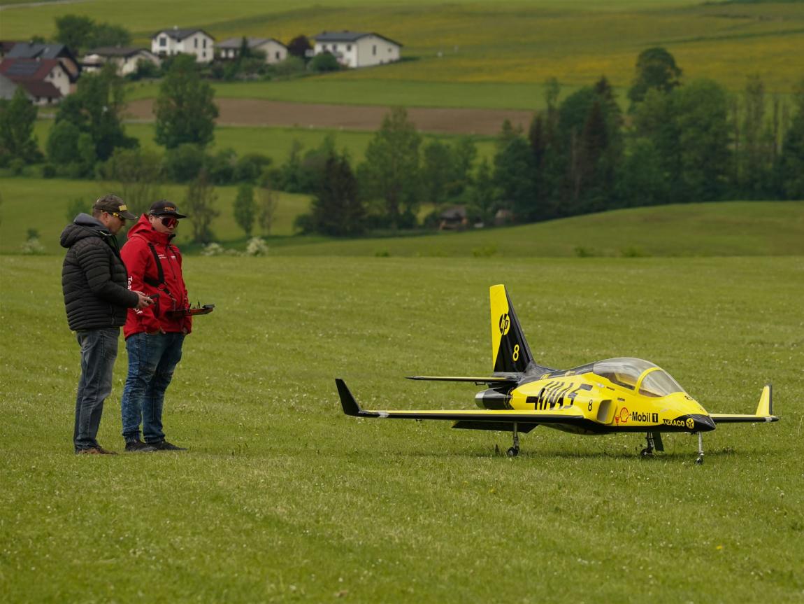Bei diesem Lehrgang konnte bzw. durfte ich mit Christoph Mohr (Teampilot der Fa. Hepf) und dessen Viperjet (Spannweite 3,5 Meter) mehrere Lehrer/Schüler Flüge absolvieren. Ein unbeschreibliches Gefühl einen so großen Jet in der Luft zu bewegen. In Flugpausen wurden Wissen zum Fliegen mit Turbinenantrieb in Form von Theorieunterricht vermittelt. Am Ende des Treffens wurde ich per "Kerosin-Taufe" in den elitären Kreis der Jet-Modellflugpiloten erhoben!